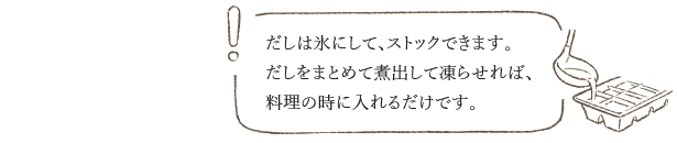 一度にまとめて煮出しておけば、だしは氷にして、ストックできます。