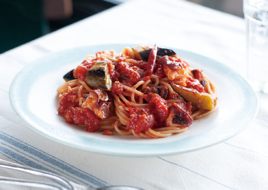 野菜だしとオリーブ油、唐辛子。これだけで絶品のパスタになります。食べ飽きない定番のおいしさです。
