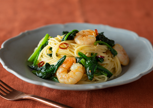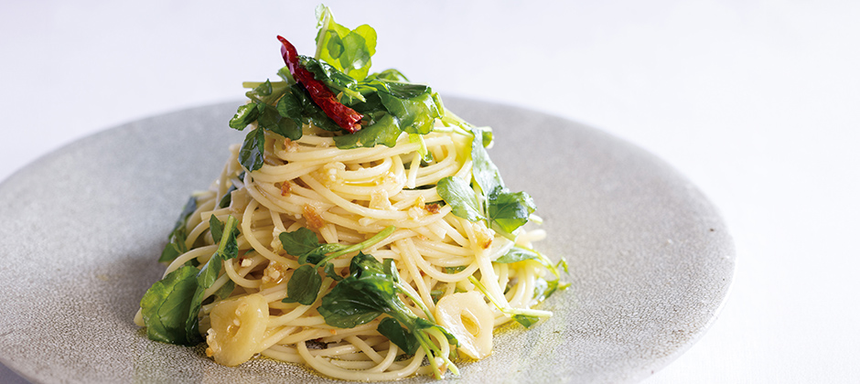 シンプルなオイルベースが、パスタの基本。オイル・にんにく・野菜だしだけでオイルソースを上手につくることができたら、具材をかえて、どんなパスタにも応用できます。