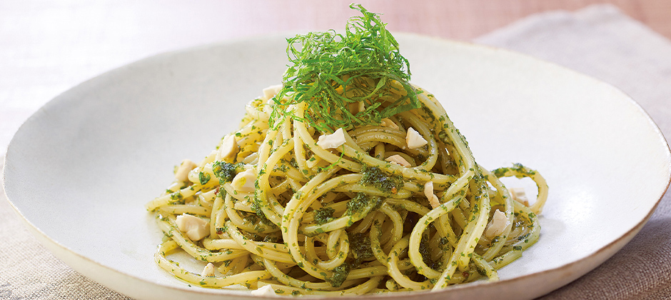 バジルの代わりに、たっぷりの大葉で。だしのおかげで、松の実・にんにく要らず。