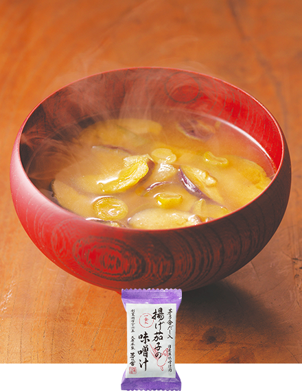 揚げ茄子の香ばしさと甘みが存分に感じられる、「茅乃舎だし」のフリーズドライ味噌汁です。お湯を注ぐだけで、つくりたてのような美味しさに。