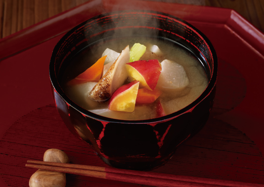 甘みとコクが際立つお味噌で、野菜たっぷりのお味噌汁を。卵を入れればよりまろやかに、栄養も満点です。