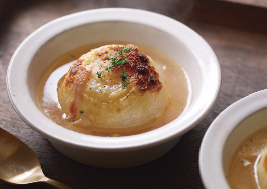 玉ねぎは輪切りにして繊維を断ち切ると、柔らかな食感になります。