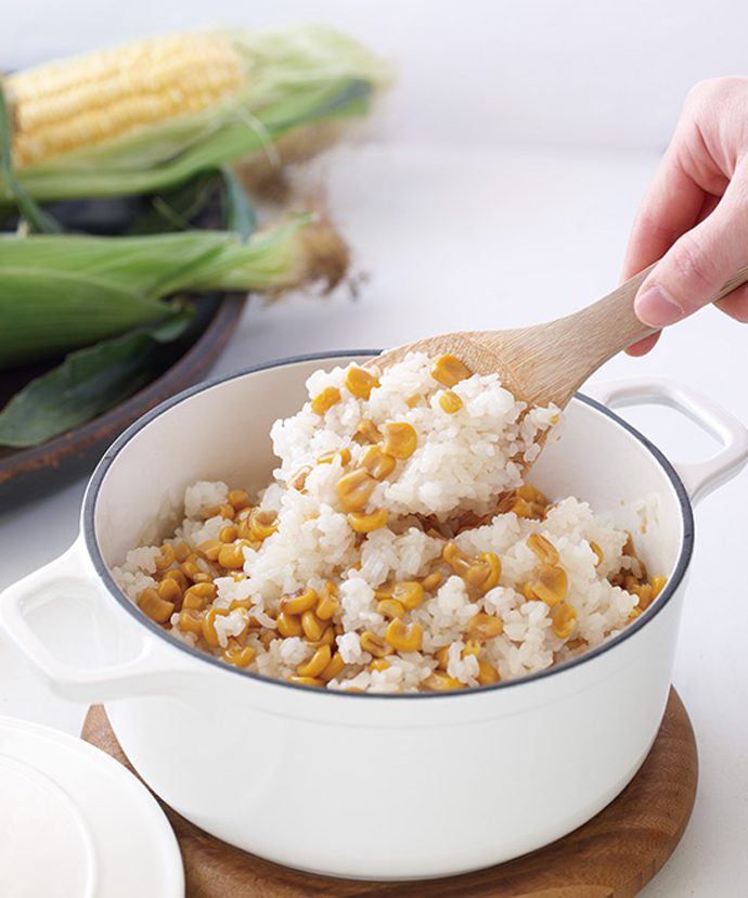 北海道産スイートコーンが甘くて香ばしい、夏限定の人気商品。混ぜ込むだけでお子さんも喜ぶ主役の一品に。
