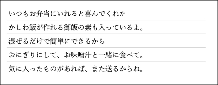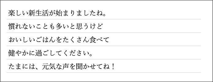 応援の気持ちをメッセージカードに込めて。気軽に送れる段ボール箱でお届けいたします。