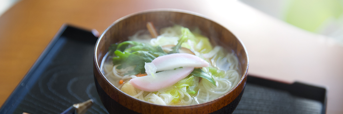 本多さんの奥さま久美子さんに、南島原での素麺の食べ方を教えていただきました。野菜と素麺を一緒に煮込み、お味噌を溶き入れた具だくさんの素麺汁。鍋ひとつで作れ、素麺は水洗いをせず、茹で汁ごといただきます。お味噌の風味がやさしい一品です。