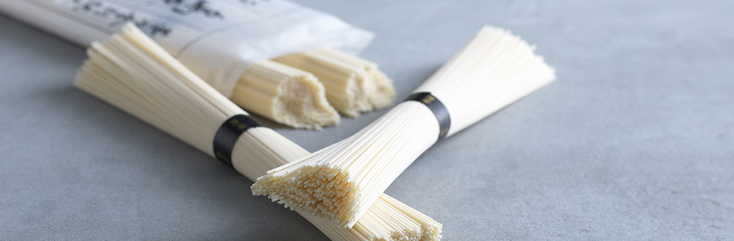 細くてしなやかな麺は、もっちりとしながらも、歯切れよく、なめらかです。素麺づくりに最適な冬季に製造しています。