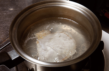 沸騰する前に③の鶏肉を入れる。